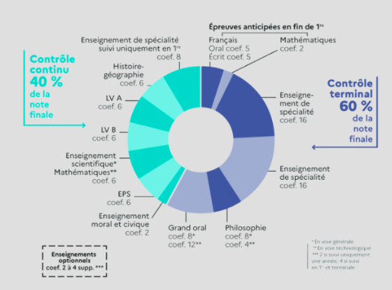 Le bac repose désormais sur :• 60 % d’épreuves anticipées et finalesEn première : français, mathsEn terminale : spécialités, philo, grand oral• 40 % de contrôle continu (détail dans le…
